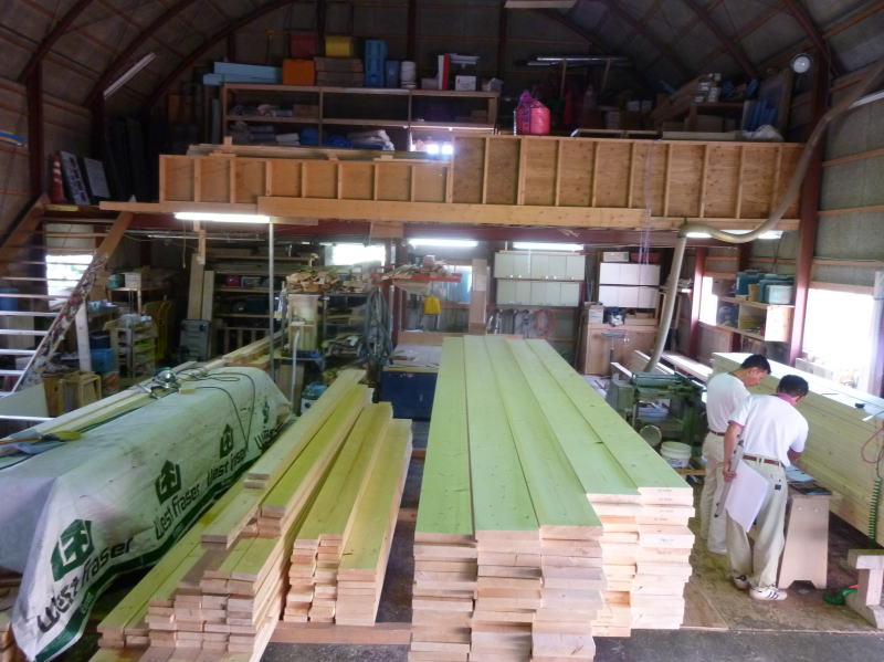 エボホームでは、木材加工のほぼ全部を作業場で行う。