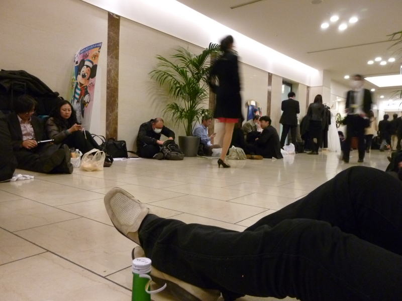 携帯電源もある。。床も大理石よりは冷たくないしさ。