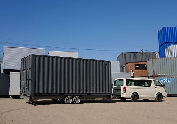 僕のタマゴトレーラーを作っている会社では、コンテナを積んで引っ張るトレーラーも作っていますね。