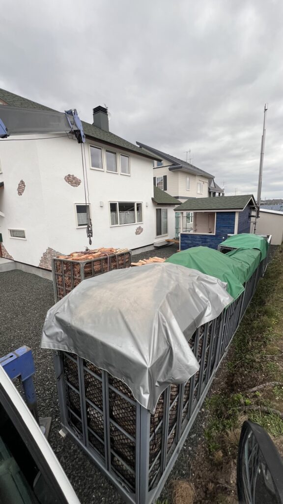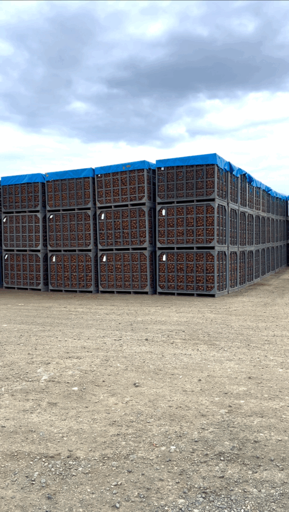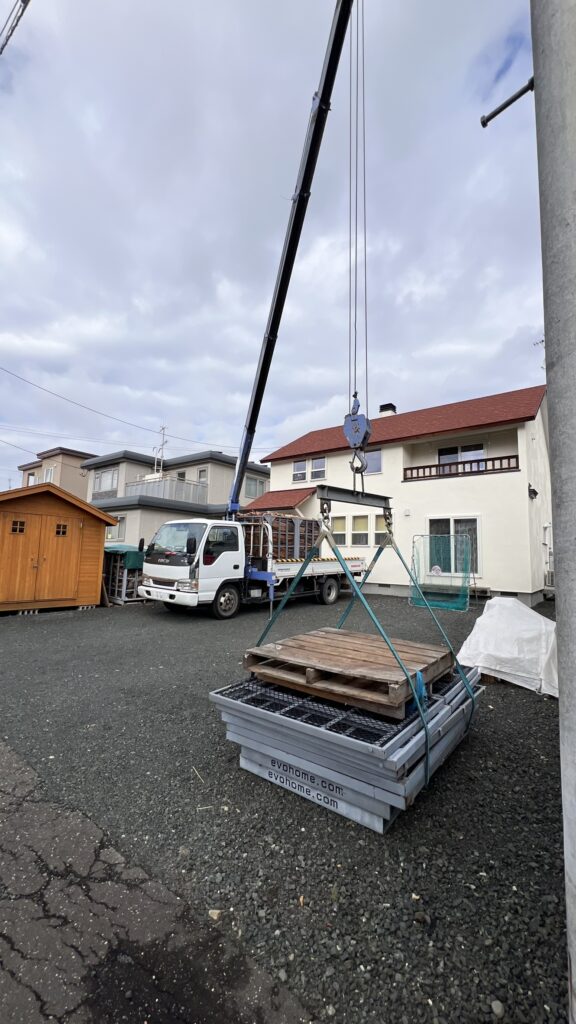 やさしいオーナーさんは、薪を置く場所じゃない所にコンテナを畳んで、ナラ薪の積んでいたパレットも重ねておいてくれる。(写真のように)