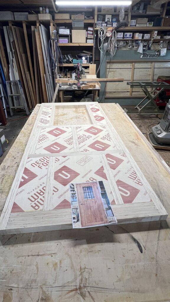 骨組みを作って断熱材をきっちりとはめ込んだところ。