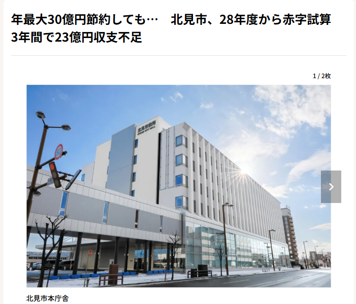 北見市が出した中期財政計画では、28〜30年度の3年間で約23.3億円の収支不足になるらしい。