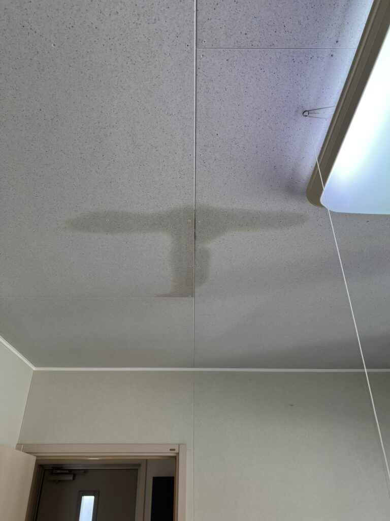 で、、 ふと見上げると1階の個室の天井にシミが・・・