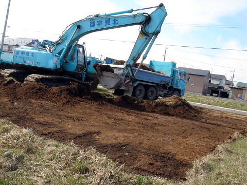 朝からひかり野で今日から始まる新築現場に行く。まずはいつもと違い悪い表土を20cm程度取り除く事から始める、ここら辺の土はお世辞にもあまり良いとは言えず、水はけも悪そうなので敷地の土を全体に入れ替える。こう言う工事を建てた後にやる人もいるけど、基礎工事と同時に行なう事で、ついでにという事もあり、かなり安く出来ますのでご参考までに。。表土を取り除き終えると建物の位置を測量したりして、基礎の掘削の開始。。掘削を見届け近くの5月27日~28日内覧会のひかり野の現場に行く。お~、、室内の塗装工事が終了している、、狙い通りのアンティークな雰囲気だ。自分的には大満足、、お客さん気に入ってくれるべか。。オリジナル対面キッチンスライドカウンター式収納もなかなか良い!。同業者様でご覧の方々、、便利ですよ!どうぞ真似してください。午後からは事務所で事務仕事色々、、図面を書いたり給与計算したりなど。