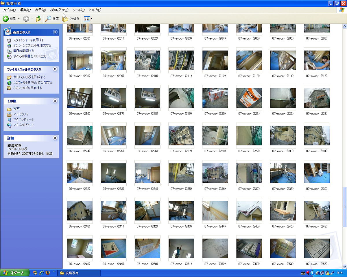 無事振り込み手続きを済ませて、現場の写真整理をしたり。エボホームでは大体一つの現場で350枚程度の写真を撮っている。地鎮祭から完成までの一部始終を記念に残してCDに焼いてお客様にプレゼントしているわけで、何て気の利く工務店なんでしょうね。素晴らしい、、自家自賛 ♪。。お客様にしてみれば何回も建てられないマイホームですから、夢のマイホーム建設の思い出作りのお手伝いも大切です。勿論こういうサービスも坪単価に入っていますのでご心配なく(笑)