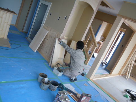 8時30分出社、、銀行に行ったりとかして、美幌に向かう。道中は雪もすっかり消えて、春らしい陽気だ。こいのぼりもチラホラ見えたりして、春がきた~って感じ。今度始まる現場を見て、その後すぐ近くの仕上げを行っている現場を見に行く。現場では塗装屋さんが、棚板などの塗装を行っていた。それにしても強烈な溶剤の臭い、、、ペンキ屋さんは早死にするって誰かが言っていたけどわかる気がする。シックハウスとかそう言うレベルを超えています。ホントいつもご苦労様です。