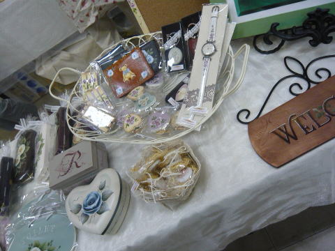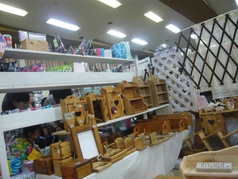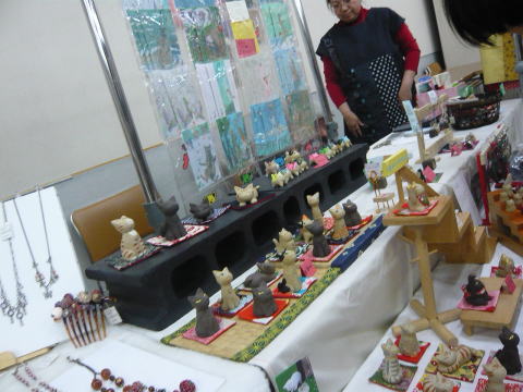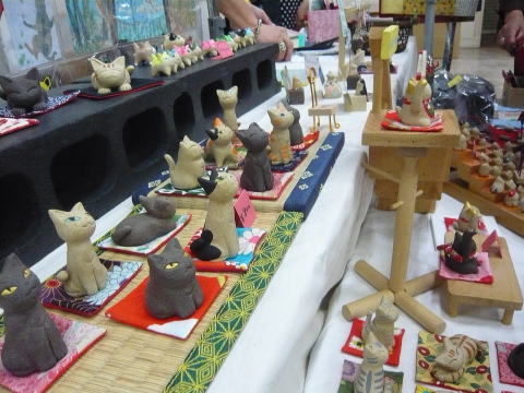 昨年と比べると雰囲気的に、ビーズアクセサリーなどは減り、その分リネンで作った小物とか、敷物、エプロンなどが多かったと思った。自分は猫の置物コーナーで釘付け♪。。あとはミニキッチンとか、、なんだかエボホームでも作ってみようかと思ったり。なんだか気が付いたら両手にいっぱい買い物をしていた。