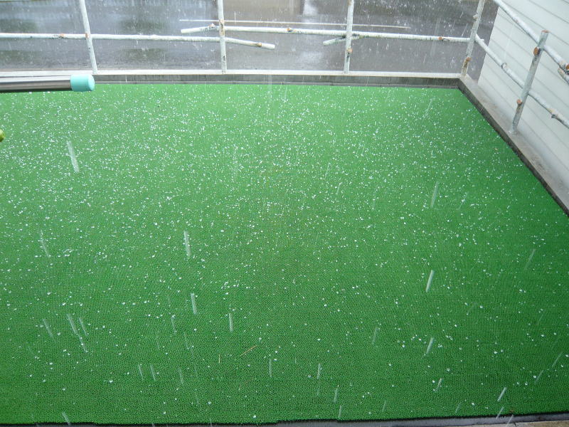 朝はうす曇りだった空も、昼頃から雷を伴った激しい雨とひょう、、パラパラと音を立てかなりの氷が空から降ってきてビックリしましたね。農家の方々の被害が心配です。