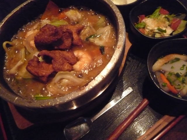 お昼はちょびぞうで青年実業家とランチ、、石焼ビビンバ用の器に入ったあんかけ焼きそばを食べたのだけど、そりゃ熱い熱い、、猫舌の人は気を付けないと昼休みが終わってしまいますので、ご注意を。。