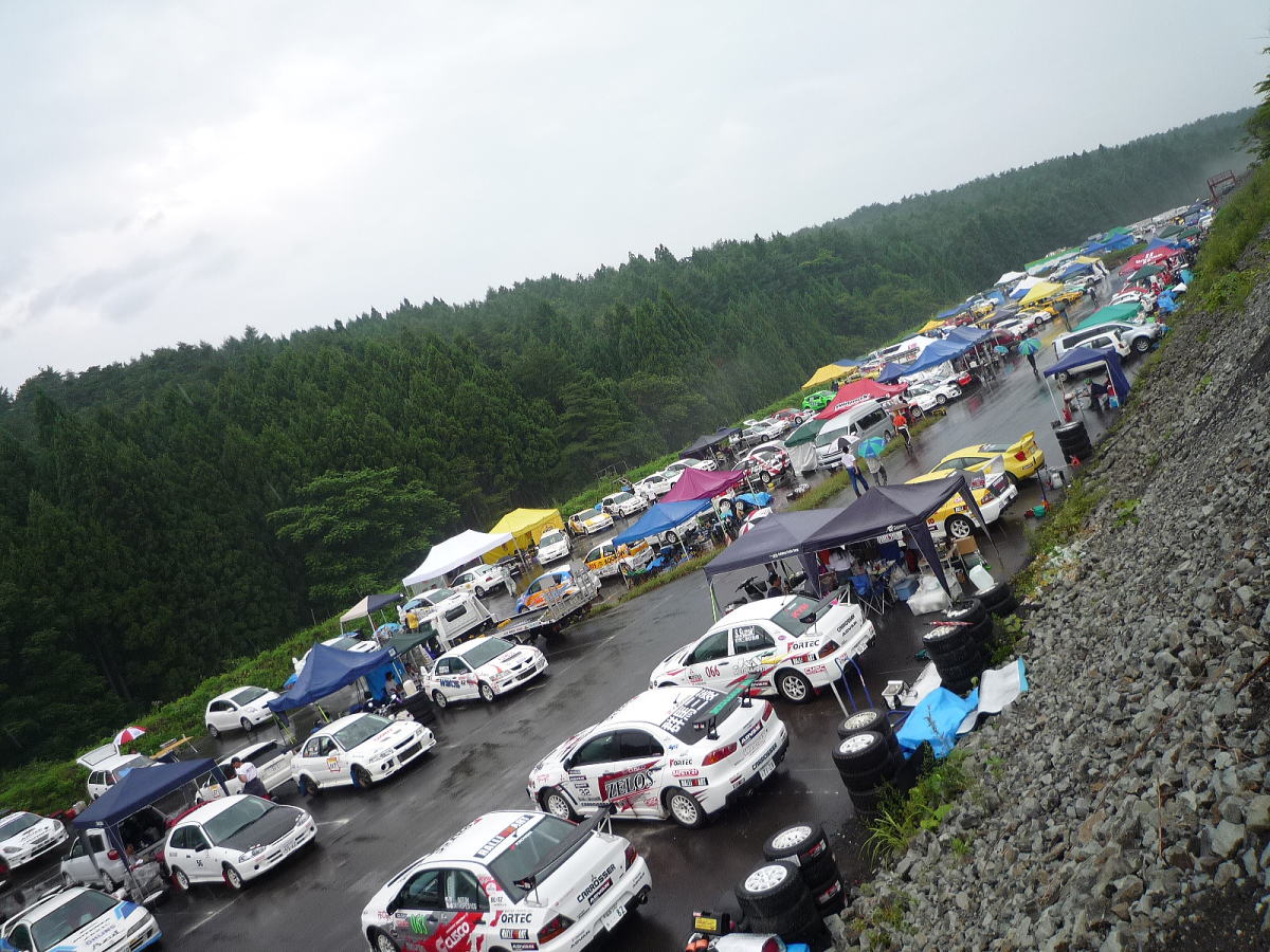 4時30分ホテルを出発、途中コンビニで買い物をしてサーキットへ向かう。それにしても断続的に雨が強く降ったりして、用意をしている間にずぶ濡れでガッカリ。