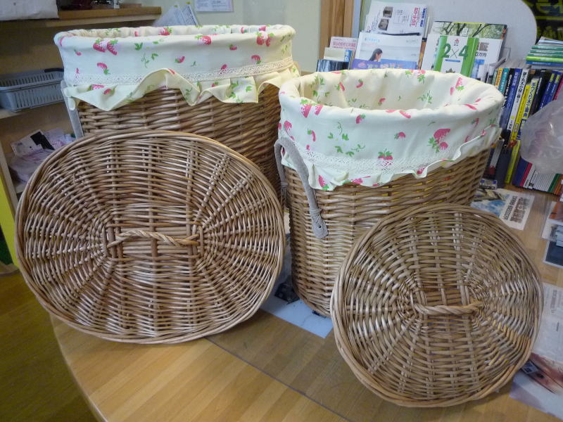 ところで右の写真のランドリーボックス(S:W35×D24×H35cm/L:W38×D30×H40cm) ですが、可愛いと思いません?ランドリーボックス以外にも少し大きめの収納ケースとして使えるアイテムです。内部もイチゴ柄のコットン地で仕上られていて可愛いですよ!