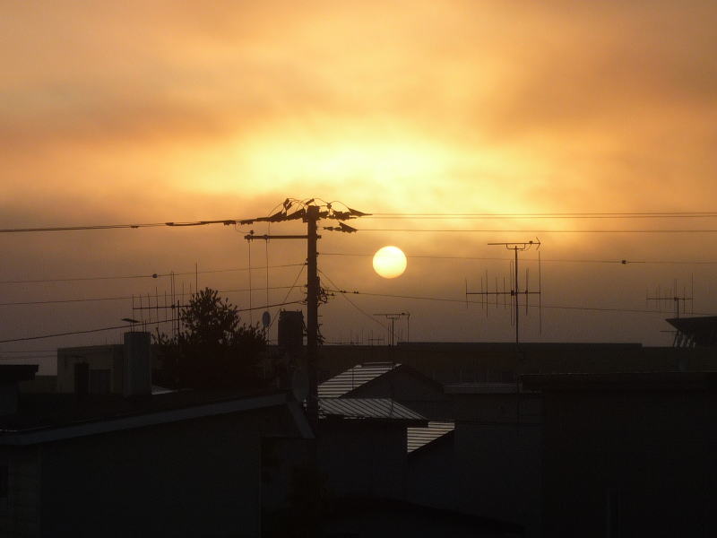 衣・食・住、、生きる為に必要不可欠なアイテムであり、逆にそれ以外何も無くても楽しく生きる事は出来るんだと思います。GNPではなくGNH=国民総幸福量のナンバーワンの国ブータンを見習わなければならないんじゃと思う今日この頃。。マネーゲームの道具に住宅を食い物にした天罰が今市場では起きています。でも、大丈夫、、明日も陽は登ります。陽が昇り、そしてたまに雨が降ってくれさえすれば、畑に種を植えると作物は育ちます。「手の綺麗な奴に金貸すな。。」昔の人はうまい事を言ったものです。額に汗をして真っ黒になって働く人達の時代が、すぐそこまで来ている予感。。最近随分手の綺麗になった自分も少し焦ってきたり、、、、現場の2階から撮った朝日。。綺麗です。。えっ、何で早朝現場にいるの?・・・、、って気にしない気にしない。
