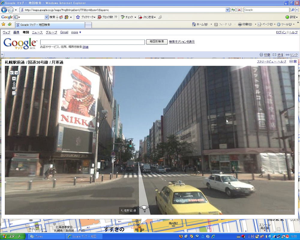 皆さんはもう見ましたか?グーグルが提供するストリートマップ。。これ、凄いですね。まだ北見は対象になっていませんが、都会にお住みの方におかれましては、おちおち他人に住所も教えられませんね。と言う事ですすきのに行ってみました。ここからまっすぐ行くと、世のお父さんの大好きな、うふ♪な街に突入ですね。あ、、行った事は無いですけど。。