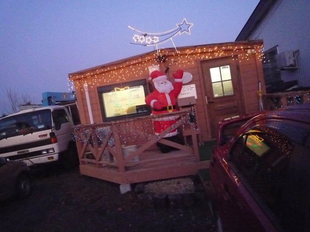 今日からイルミネーションも点灯、、サンタクロースさんは文句も言わず。風にあわせて手を振って営業スマイル、、いいですねぇ~