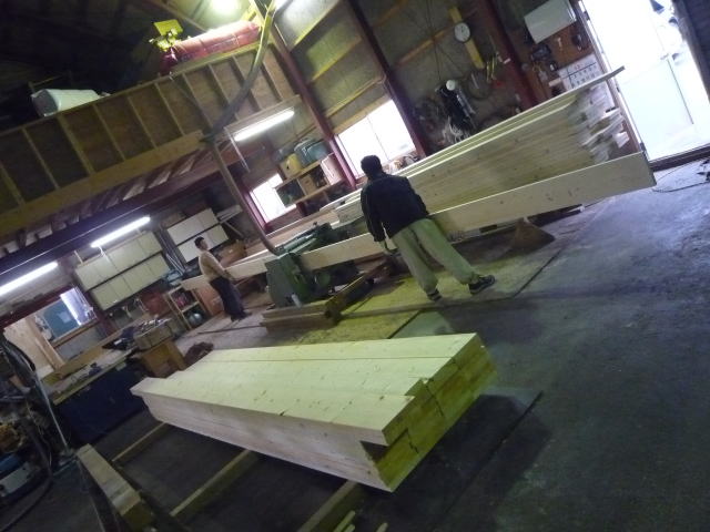 8時30分出社、、事務仕事を色々。。給与振込みや次の現場の段取り、内覧会の資料作りなど。。作業場では大工さんが次の現場の加工が始まった。まずは床根太の分決めの作業から行う。普通のツーバイ工法ならやらない面倒な作業だが、エボホームでは昔からやっている。通常使用する根太材は235ミリの規格なのだけど、実際は233とか236とかバラツキがあるので、大型電気カンナを使用して、全部同じ寸法にする作業である。たった数ミリのことではあるが、この積み重ねが何千もの部材を組み合わせて完成するときには、大きな精度の違いが出るものなのですよ。知っている限り他でやっている話は聞こえてこないのですが、こんだけ丁寧に作った分も、坪単価に入っていますから~、、、ところで誰が最初に言い出したのでしょうね??「坪単価」ってい言葉、、、作り方も、使うものも、アフターサービスの体制も、全く違うお家を単に価格を面積で割る。。あまり好きな言葉じゃないですねぇ~、、、