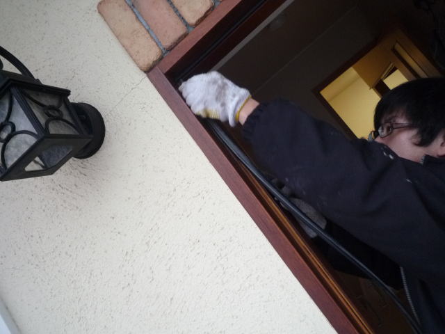 現場でマスキングから塗るまでの工程を一通り説明して、作業に取り掛かる。。おお、なかなか器用な腕前に感心。。