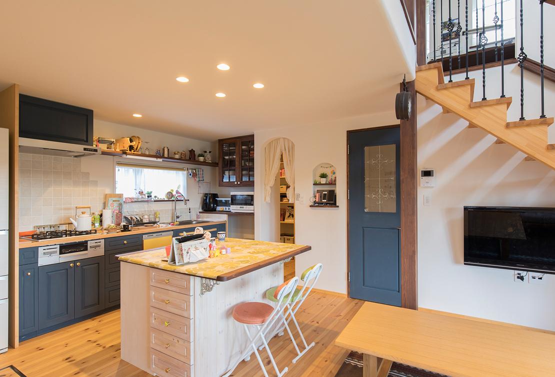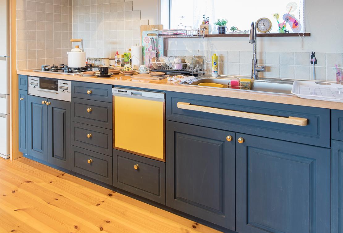 - ネイビー(台所)と黄色(ロールカーテン)が絶妙に合う。