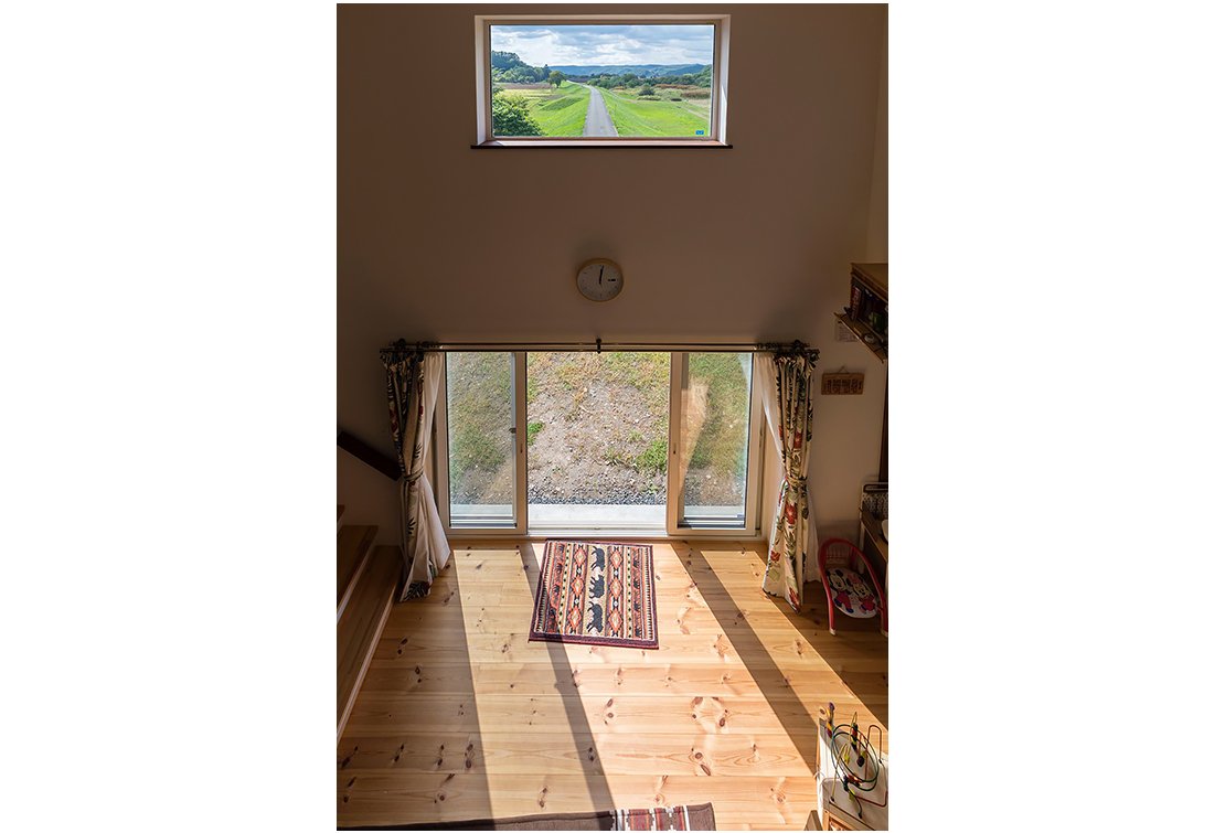 - 朝起床して、2Fの廊下から見える景色、リビングの大窓からの景色。