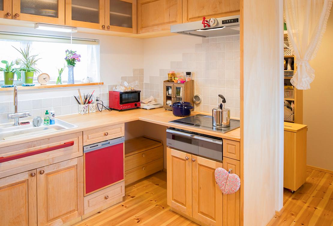 - かわいいオーダーキッチンが見えなくなるのと、何かあったときにすぐにいけないetcの社長の説得があり、L型キッチンになりました。